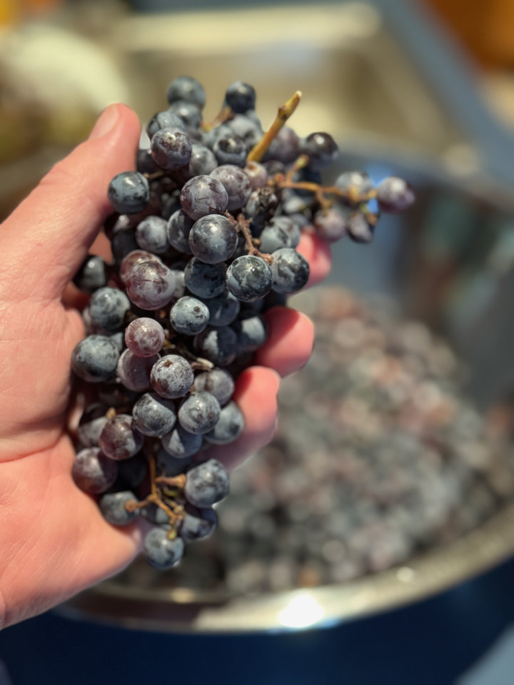 We even brought in a grape harvest. Years ago, I planted Catawba and Spanish Black grapes in an attempt to grow wine. I didn’t know much about it, and the area of grape plantings were no where near enough to support wine production. Then, the grapes always ripened when we were traveling to Red Power so the opportunistic birds got a big share of the produce. This year, we were on-site in June/July when the grapes were ripening and got enough to produce Wine Grape Jelly. I’ll say more about this in a future post, but suffice it to say it’s delicious.